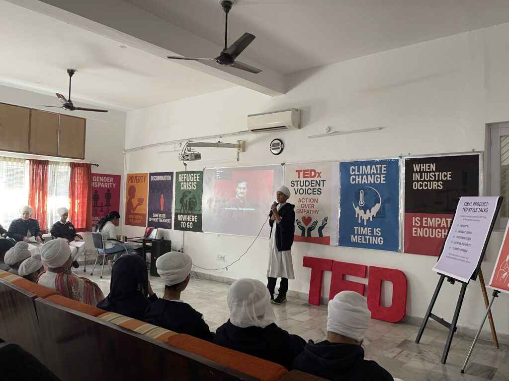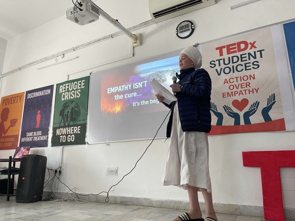 As the final product of the expedition, students presented TED style talks that addressed contemporary forms of injustice. Each student explored a different issue, using graphs, images, data, and real-world examples to show that while empathy is important, it is action that creates change. The session was confidently anchored by Ekamnoor, who introduced the theme, speakers, and purpose of the talks.
