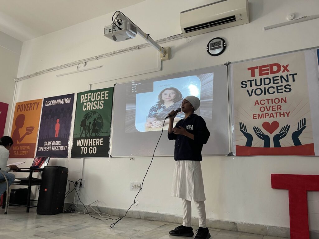 Ekampreet explored poverty, illustrating how structural inequality persists when empathy is not followed by intervention. Ekamnoor presented a thought-provoking talk on gender inequality, highlighting those who transformed empathy into advocacy and reform.
